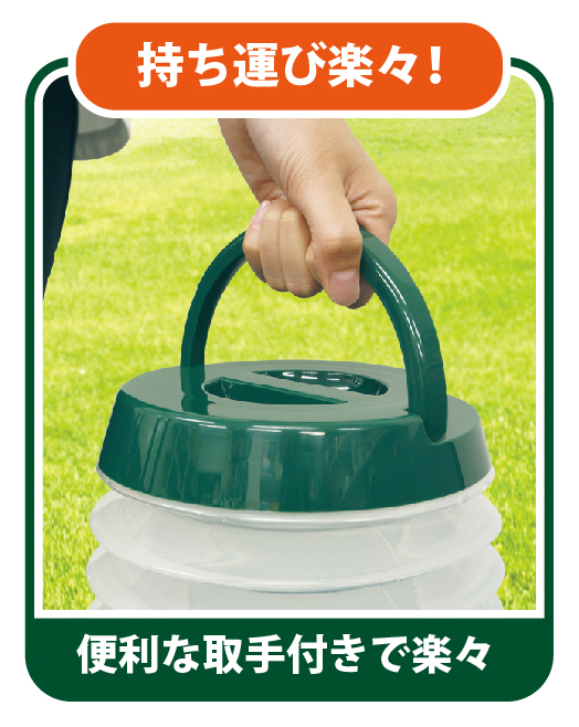 災害時の飲料水の確保は、最大の課題です。被災地ではよく、大きなポリタンクが重くて、運ぶことができない方を見かけます。また大きなポリタンクから、使いやすい容器に移すのもまた面倒なことです。この容器は大容量5.5Lで、折りたたみ式なので収納に便利で、持ち運びが容易。しかも、コック式で簡単に注水/止水の切り替えができるので、とても使いやすくなっています。野外で使うにも便利です。【水の運搬等】
