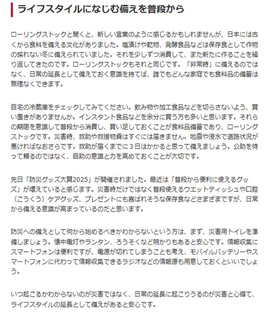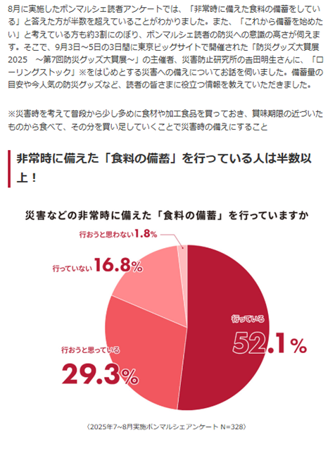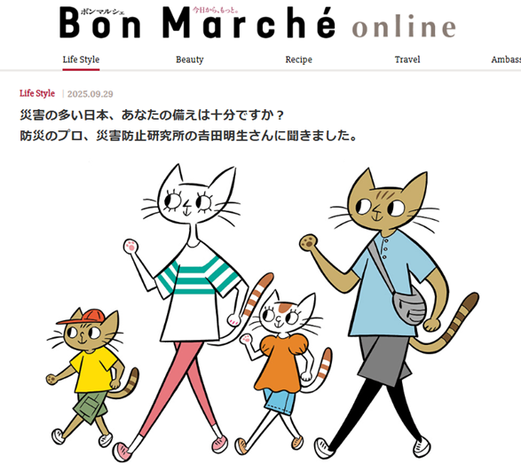 朝日新聞のオンライン誌 ボンマルシェの取材を受けました。 テーマは、私ども災害防止研究所が普及したいと考えているローリングストックをテーマにして、身近なところから備えを積み重ねていきましょう、という話をさせていただきました。 朝日新聞ボンマルシェ 第7回防災グッズ大賞展が生放送されました(7.9.3~5)